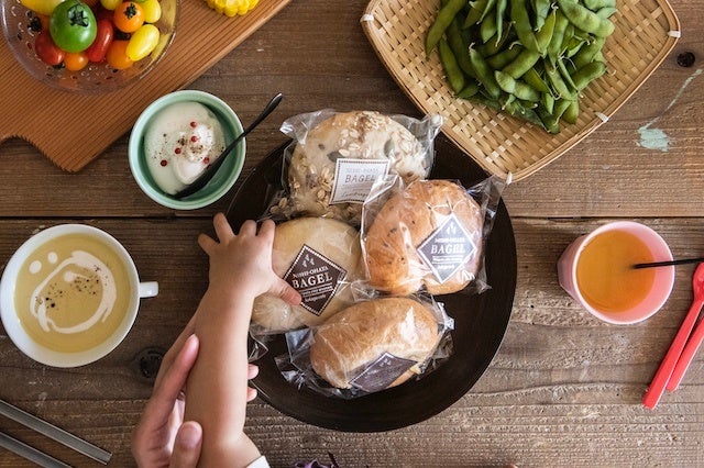 「西大畑ベーグル」は小麦がギュッと詰まったモチモチ食感の本格派ベーグル。新潟県産小麦をメインに天然酵母でじっくりと発酵させ、保存料・添加物は使用せず、1つ1つ手作りで作られています。種類も豊富で、基本の4種類の生地と2ヶ月毎に替わる季節限定生地の5種類をベースに、常時14種類ほどラインナップ。色々な生地のベーグルを楽しみたい方、また、卵・乳製品不使用なので卵や乳製品のアレルギーの方などにもおすすめです。