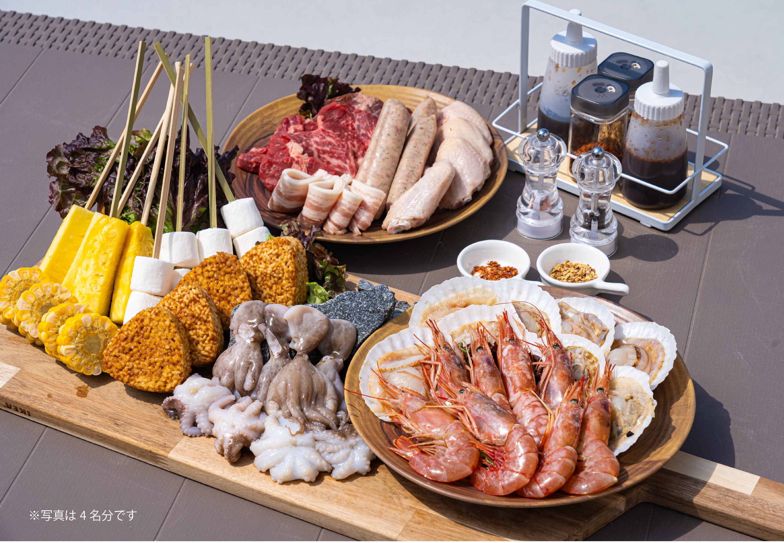 ・タレ、スパイス等も含め、BBQに必要なものは全てご用意!手ぶらで楽しめます