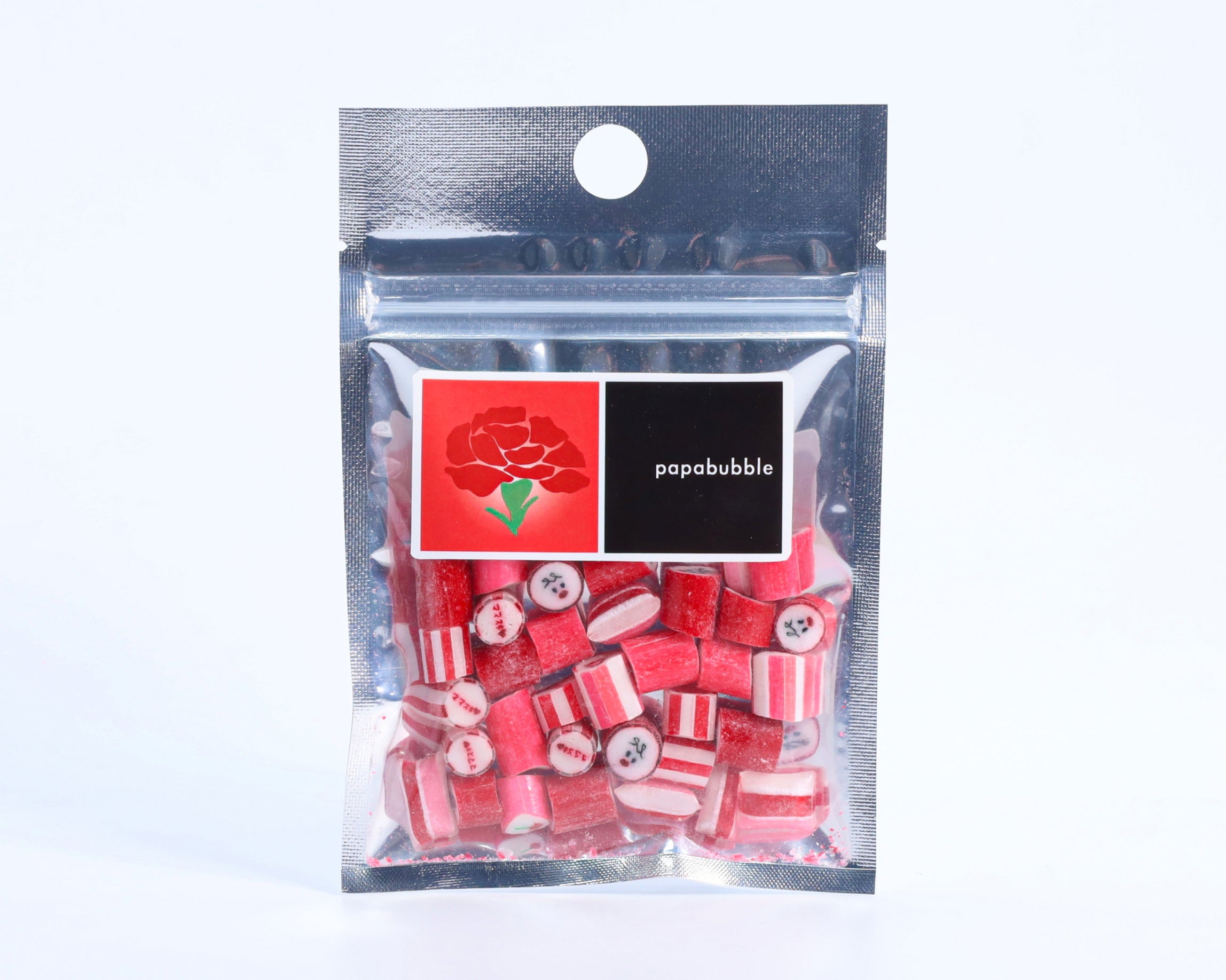 感謝の気持ちを伝えるカーネーションのデザインの他、まるでお子様が描いたようなほっこりするママの似顔絵柄、“ママスキ♡”の文字が入ったキャンディなど、小さなキャンディに感謝の気持ちを詰め込められる商品に仕上げました。フレーバーは、華やかなライチローズやさっぱりジューシーなミックスベリー、ピーチマスカットなどを使用し、忙しい毎日に気分の上がるミックスとなっています。