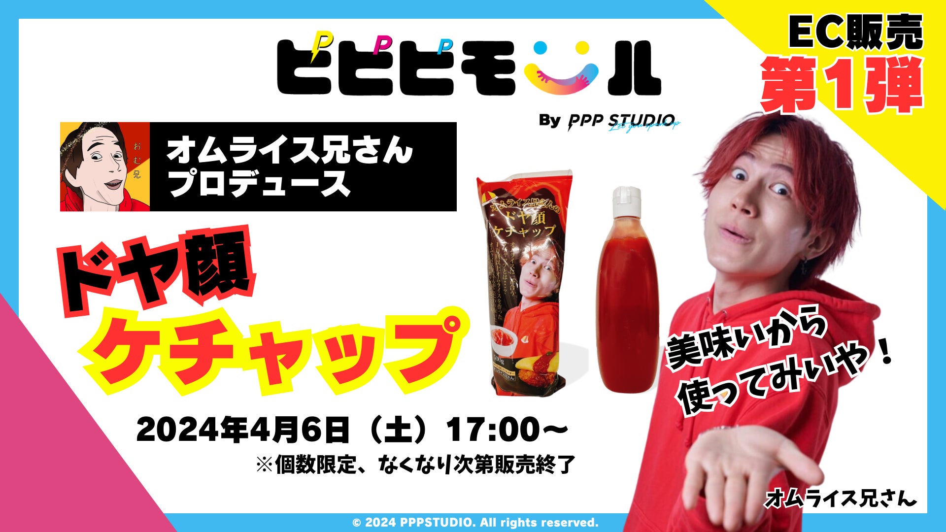 PPP MALLは、PPP STUDIOに所属もしくは提携のあるクリエイターとそのファンの皆様に向けたサービスで、オリジナルグッズの販売をメインに展開いたします。第1弾のオリジナルグッズとして、オムライス系クリエイター「オムライス兄さん」がプロデュースするトマトケチャップ「ドヤ顔ケチャップ」をPPP MALLオープンと同日より販売開始いたしました。オムライス兄さんのオリジナルグッズは”ドヤ顔シリーズ”として今後も様々な商品を展開していく予定です。ぜひご期待ください。