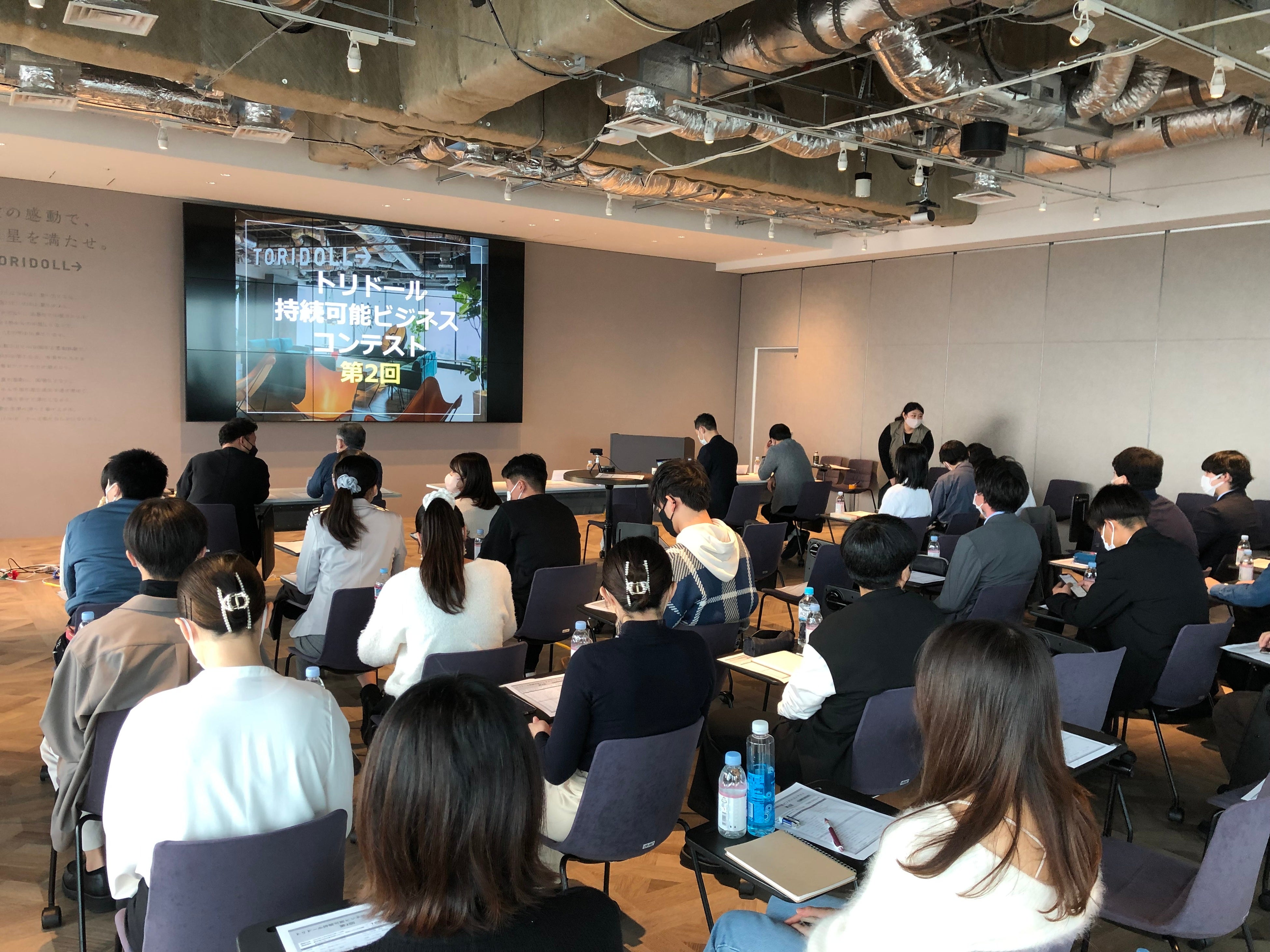現役大学院生・大学生の方々にトリドールグループの事業内容をベースとして、「持続可能なビジネスプラン」を企画いただき、代表取締役社長 兼 CEOの粟田含む当社グループ経営層にプレゼンテーションいただくコンテストです。