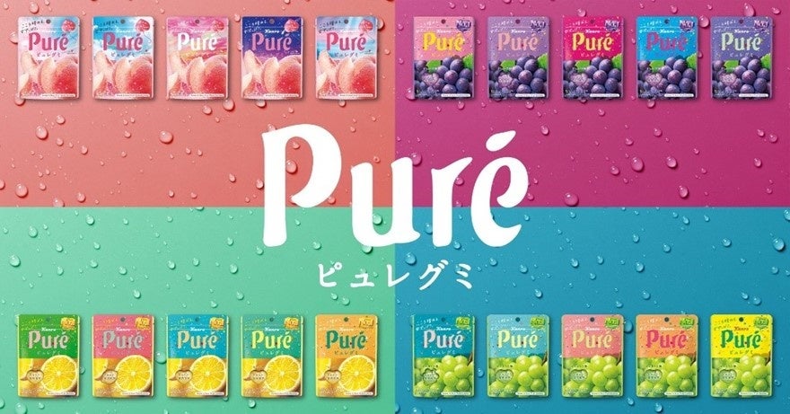 「ピュレグミ」は、食べた瞬間にこころが晴れるような、甘ずっぱいフルーツの味わいが特徴の、カンロを代表するグミ市場売上 No.1ブランド※です。フルーツのおいしさを引き出す“すっぱいパウダー”と独自の“果肉食感”により、噛むほどにフルーティーな味わいが広がります。2002年の発売以来、ジュレが入った贅沢な味わいの「ピュレグミプレミアム」や、すっぱさ控えめの「ピュレリング」などのシリーズを展開し、大人から子どもまで幅広い世代の方にお楽しみいただいています。
