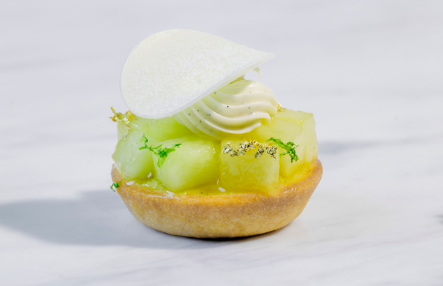 ・ メロンタルト、クレームダマンド、クレームパティシエールとレモンコンフィチュール