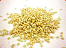 原料は均一に混ぜた後、パフ製造機で粒状にします。パフ製造機では筒の中で生地を高温で練り上げ強い圧力で押し出し、筒から外に出た瞬間に一気に膨らんだところを粒状にカットします。この時にパフの中に小さい気泡ができるので、あのサクサク食感が生まれます。