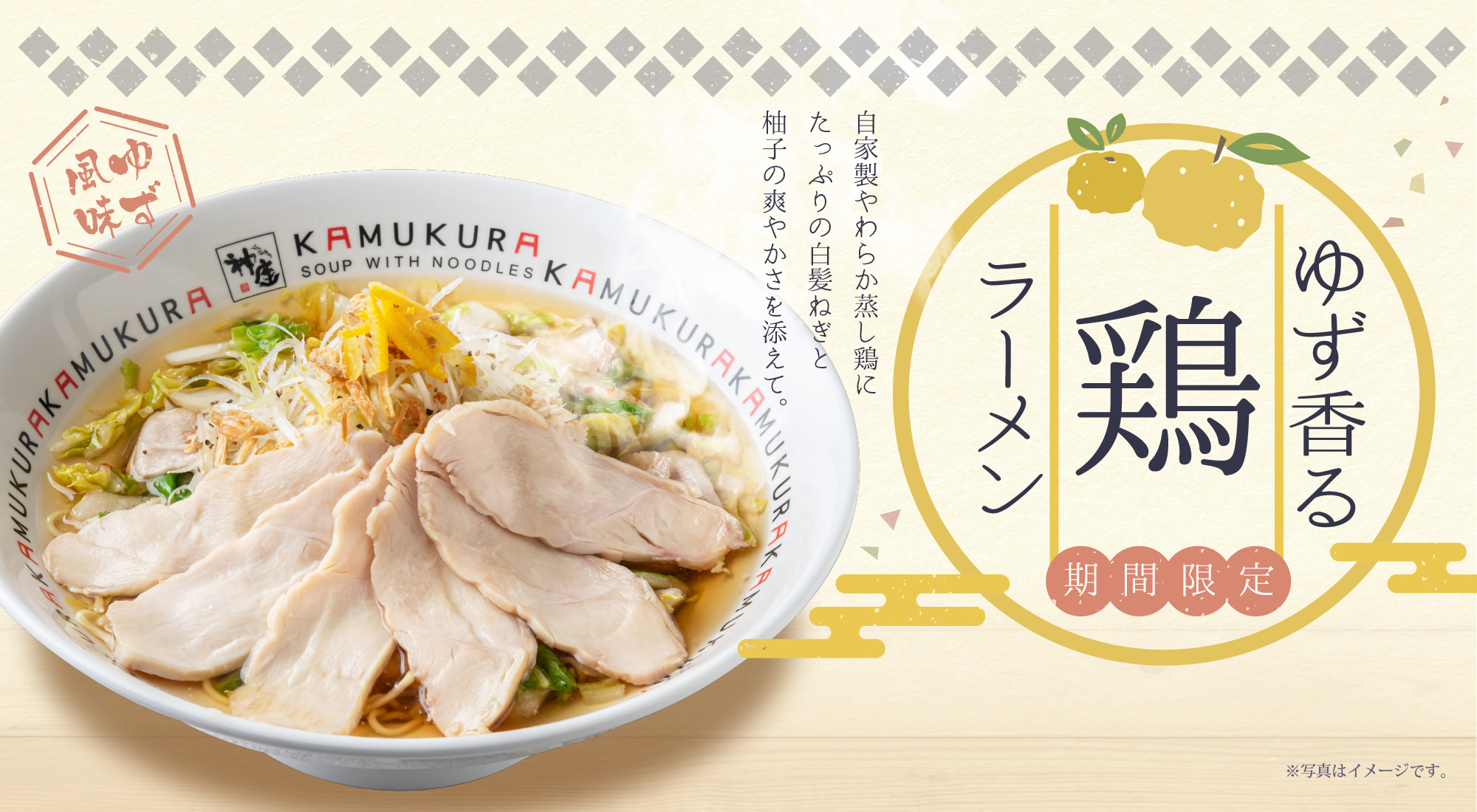 毎年大好評の春の季節限定メニュー『ゆず香る鶏ラーメン』が今年も登場します。