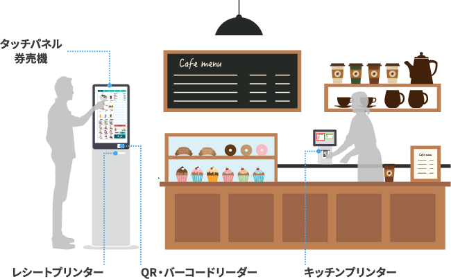 「注文・会計」をお客様に行っていただける券売機は人手不足対策、省力化・省人化に最適なシステムです。