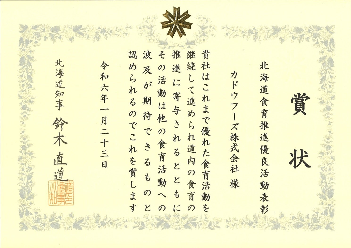 北海道の美味しい食品をお届けするカドウフーズ株式会社(北海道)が、地球環境および食育に関する賞をいただきました