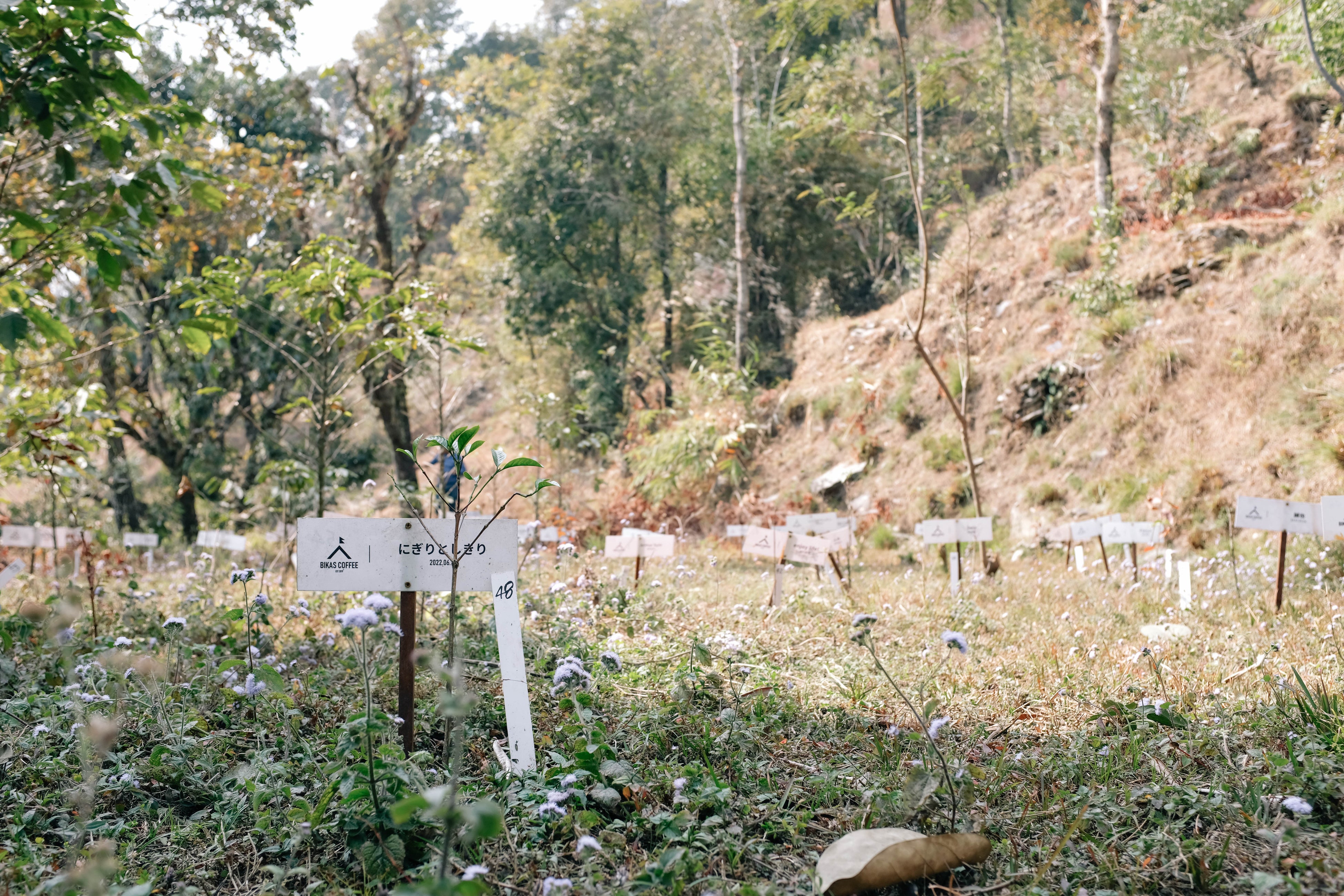 2024年に4年目を迎えるBIKAS COFFEE VILLAGEは、新たにオーナーを募集いたします。苗を植えてから実がなるまで約3年と言われています。3年後に収穫をしたコーヒーは植樹1本につき500gの豆をオーナーの元へお届けします。また、植樹してから3年間、ネパールのコーヒー農園からの成長レポートをお届けします。農園の様子やコーヒー農家さんの声などをお届けしながら、オーナーが植えたコーヒーの木が実を結ぶまで大切に育てます。これまで3年間の試行錯誤を活かし、コーヒーの木の成長に必要なシェイドツリーとなる果物などの木もともに植えながら、アグロフォレストリー農法で森を育てていきます。