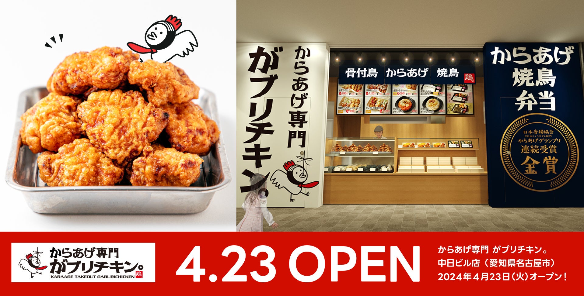 「がブリチキン。」は2011年2月に愛知県名古屋市に1号店を出店して以来、13年間で約70店舗を日本各地や海外で展開している、「からあげ」「骨付鳥」「漬け込みハイボール」が3大名物のからあげバルです。また、情勢の変化に合わせて様々なニーズに対応すべく、従来の”バル・居酒屋”といったアルコール業態に加え、”テイクアウト専門店”、”フードコート”、”キッチンカー”などの非アルコール業態の展開もしています。 名物の「からあげ」は日本唐揚協会の主催する「からあげグランプリⓇ」中日本しょうゆダレ部門で12年連続金賞受賞中。独自の製法で揚げた外はサクっと中はジューシーでボリューム感のある「からあげ」は自慢の逸品です。