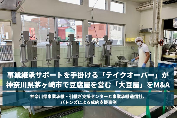 神奈川県茅ヶ崎市を拠点に、約40年にわたり国産大豆100%にこだわった安心・安全かつ美味しい豆腐を提供してきた大豆屋は、ペット事業や飲食事業を中心に事業再生、事業継承サポートを手掛けるテイクオーバーに株式譲渡を実現されました。