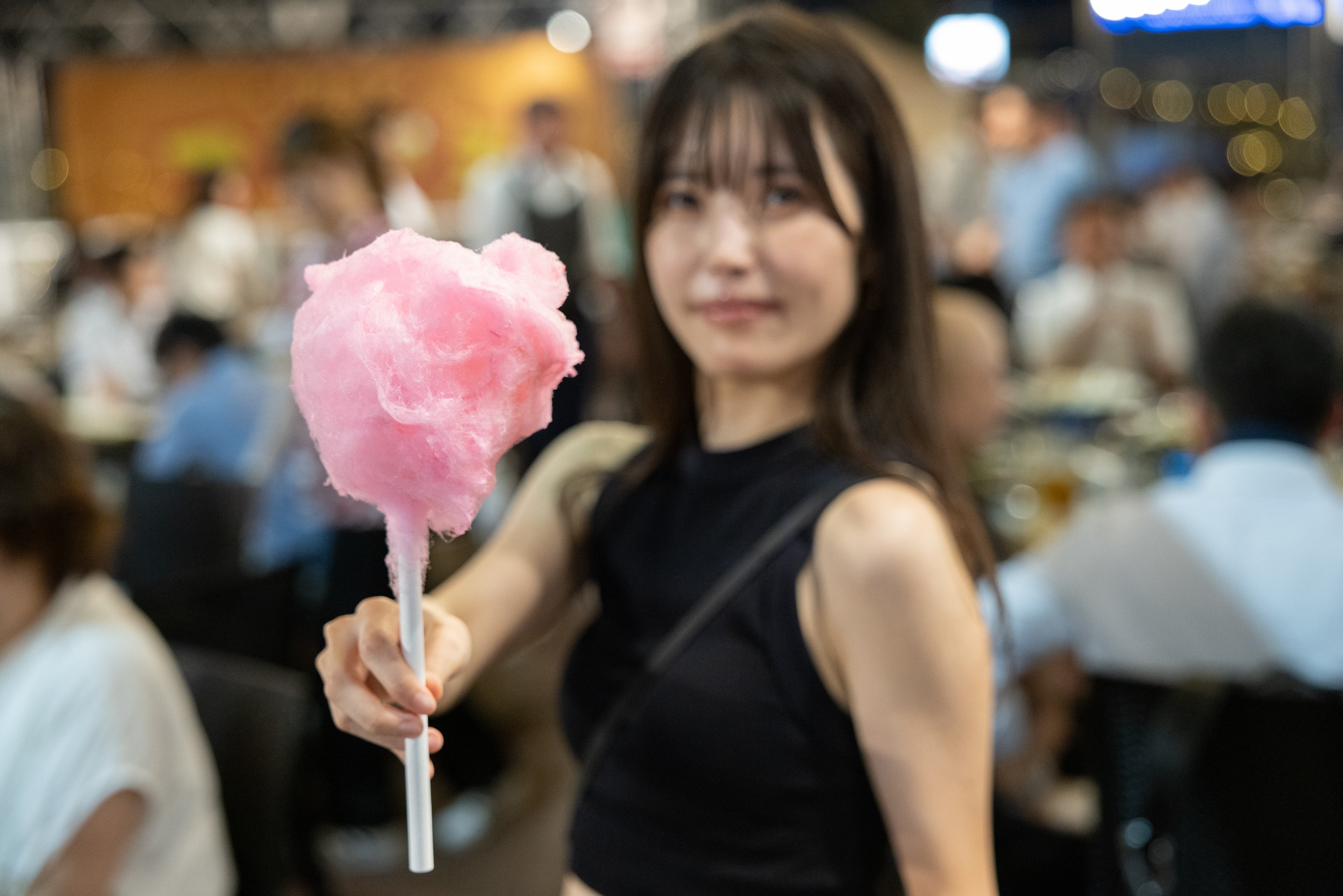肉や魚介はもちろん、野菜も充実し、カレーやラーメン、スイーツまで幅広くラインナップしています。綿菓子なども用意しており、家族で訪れても満足してもらえるフードメニューです。