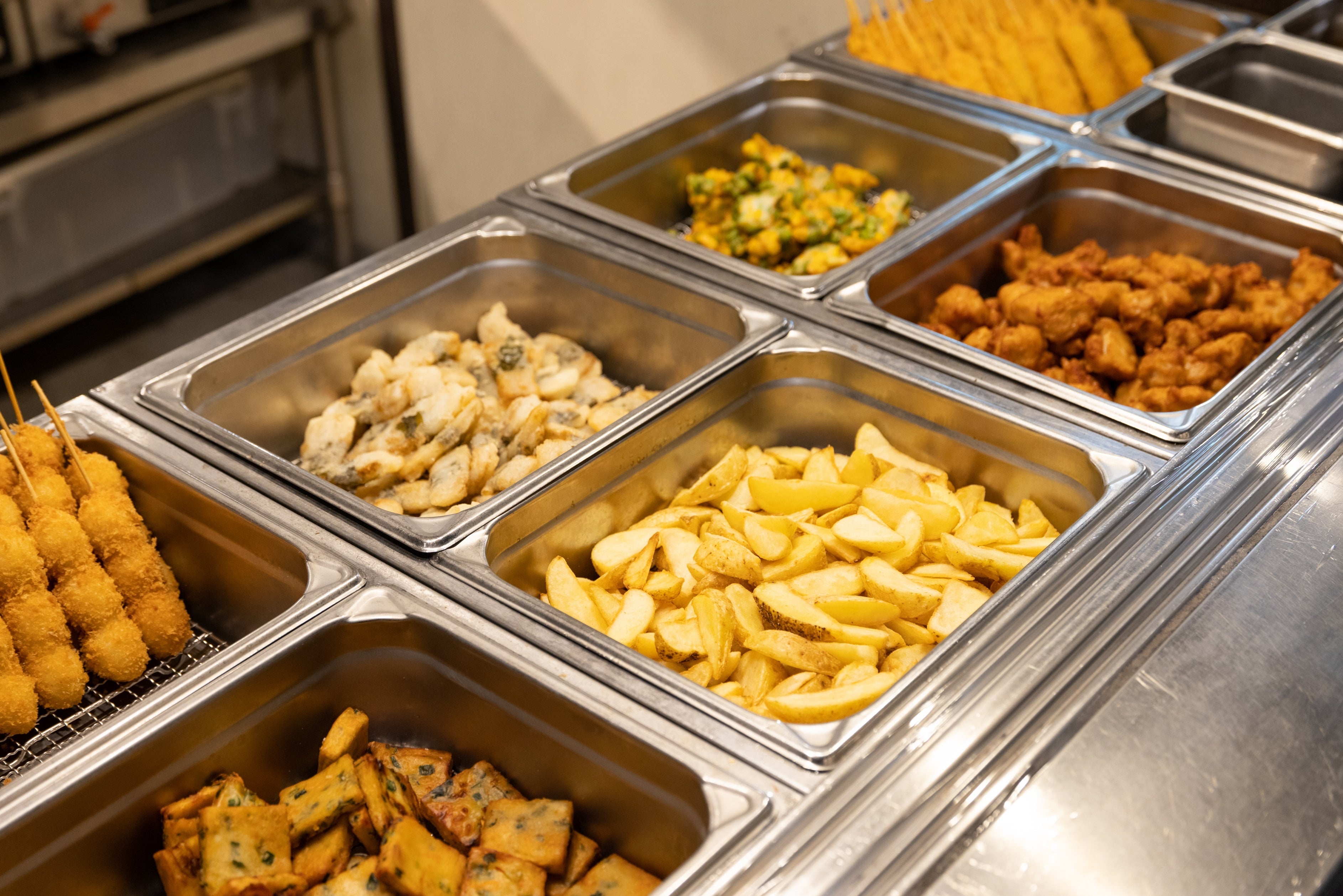 『はまぐりやエビ等の魚介類に、もつ煮、春巻きフランクフルトなどが追加されメニューがさらにパワーアップ!』