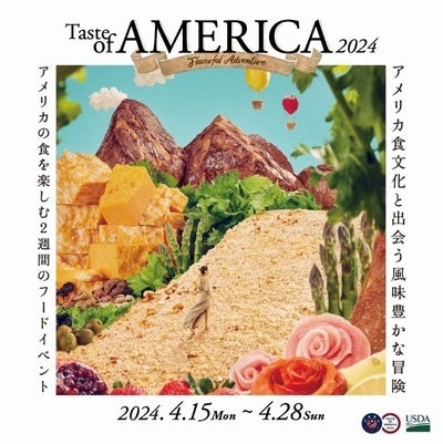 「TASTE OF AMERICA 2024(テイスト オブ アメリカ 2024)」はアメリカ大使館農産物貿易事務所(U.S. Embassy Agricultural Trade Office)が主催するフードイベント、アメリカの食材や食文化に触れ、アメリカの食を広く楽しんでいただくことを目的に、2024年4月15日(月)~28日(日)の期間限定で開催されます。都内を中心に30店舗以上のレストランが参加し、アメリカ食材を活かしたスペシャルメニューが提供されます。