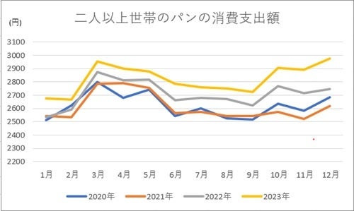 尚、1年の中でも春はパンが最も消費されている季節。(下記図参照)国産小麦・自家製酵母を使用したこだわりのパンのあるモーニングをスタートしてみてはいかがでしょうか。