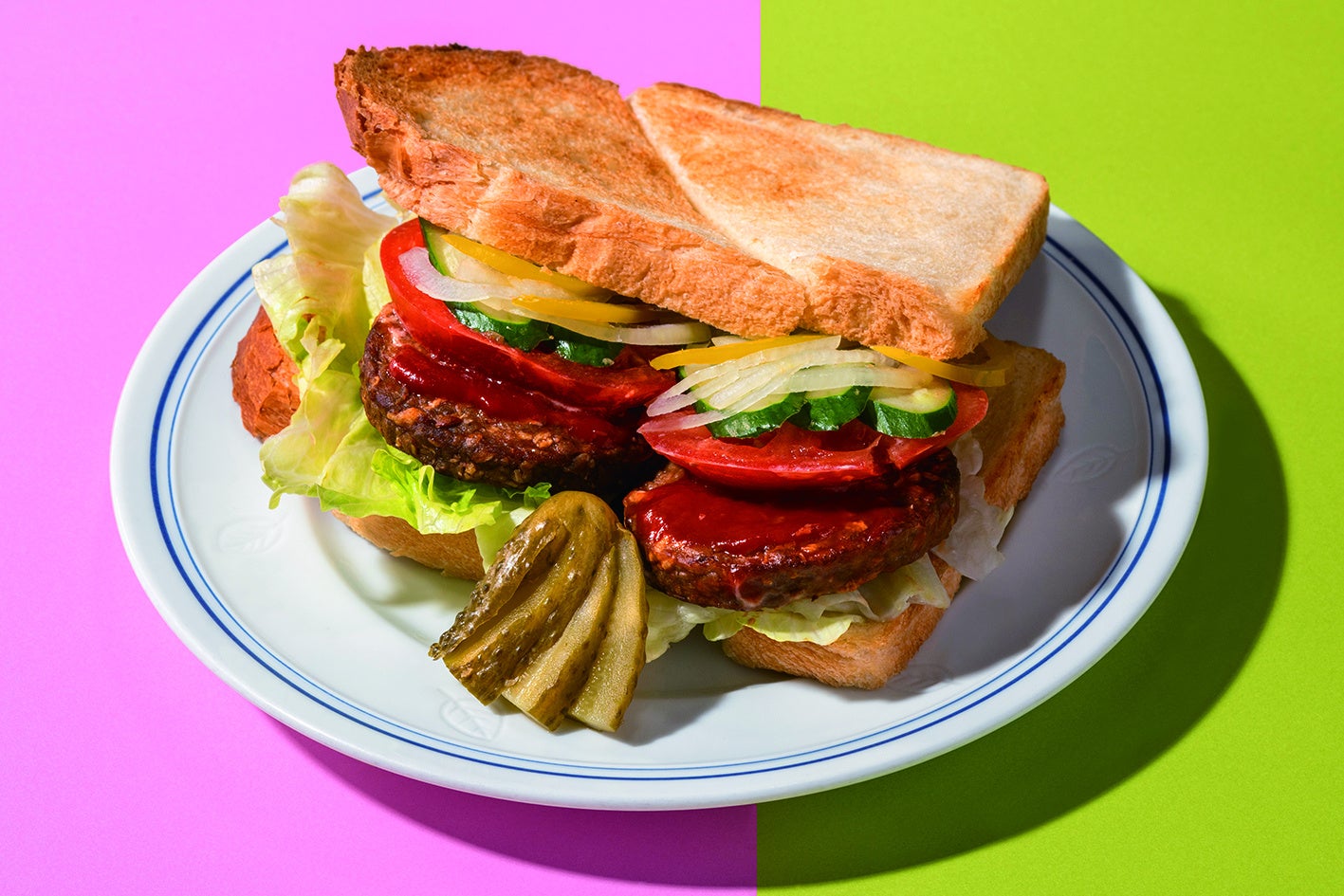 大豆ミートハンバーグと野菜たくさんのサンドウイッチ