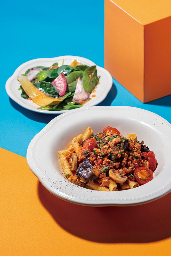 <Tastable>NIKUVEGEそぼろに、葱と山椒をピリッと効かせて和風テイストに仕上げたボロネーゼ。