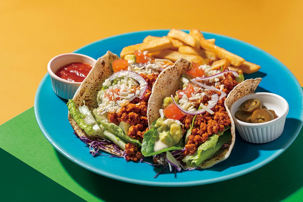 ザ・ギャレイ人気メニューのタコスをプラントベースフードでアレンジ。