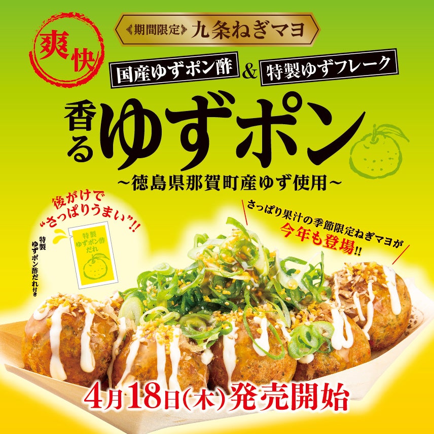 『九条ねぎマヨ 香るゆずポン』 は、昨年も期間限定商品として発売した人気商品で、芳醇な香りと爽やかな酸味が特長の 徳島県那賀町産 「木頭ゆず」 を使用した 「特製ゆずポン酢だれ」 をベースに、シャキシャキ食感の “九条ねぎ” を合わせ、彩り華やかな “特製ゆずフレーク” と “白ごま” をトッピングして仕上げました。