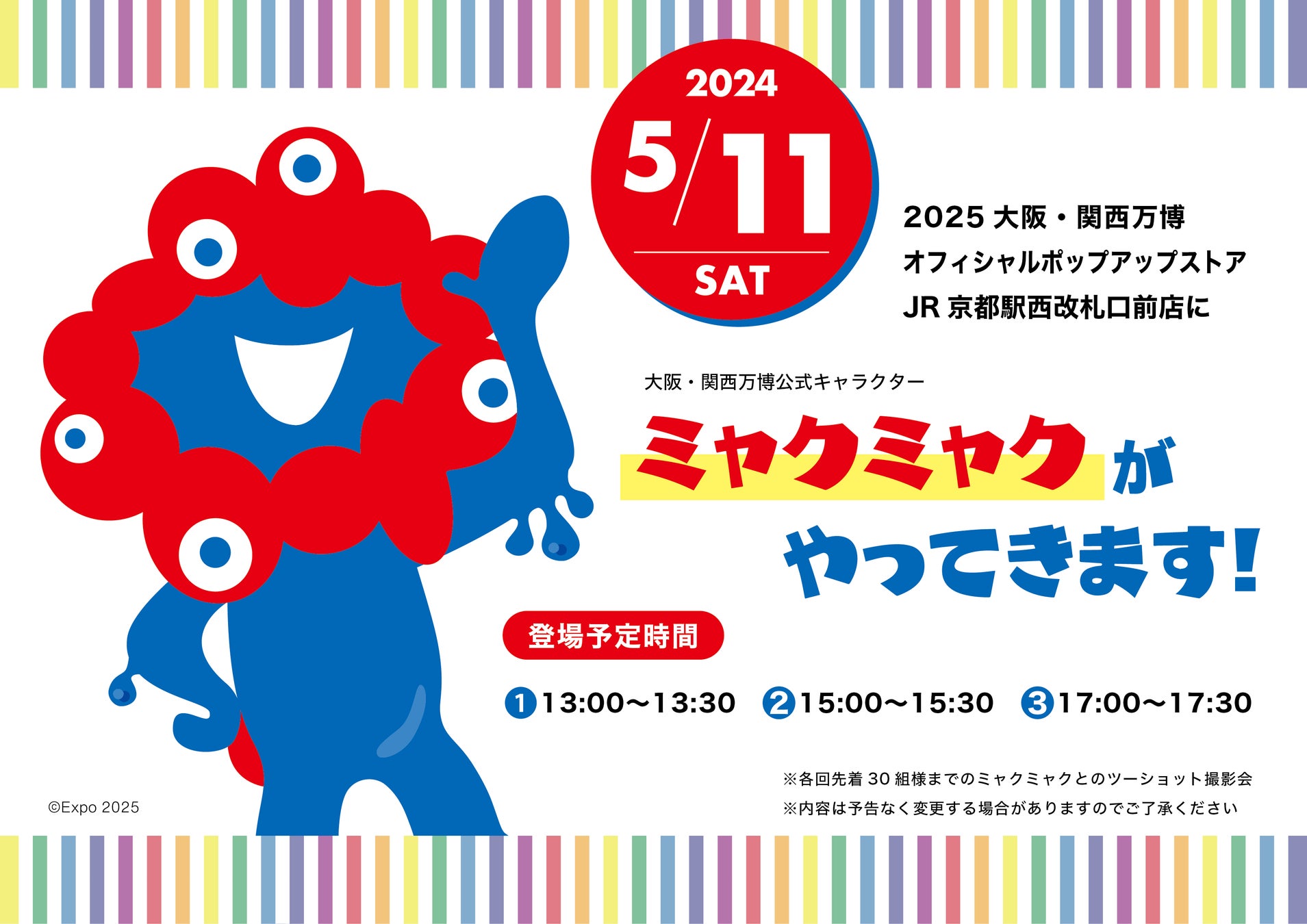 2025大阪・関西万博オフィシャルポップアップストア JR京都駅西改札口前店に、大阪・関西万博公式キャラクターのミャクミャクがやってきます!ミャクミャクと一緒にツーショット写真を撮影しよう!