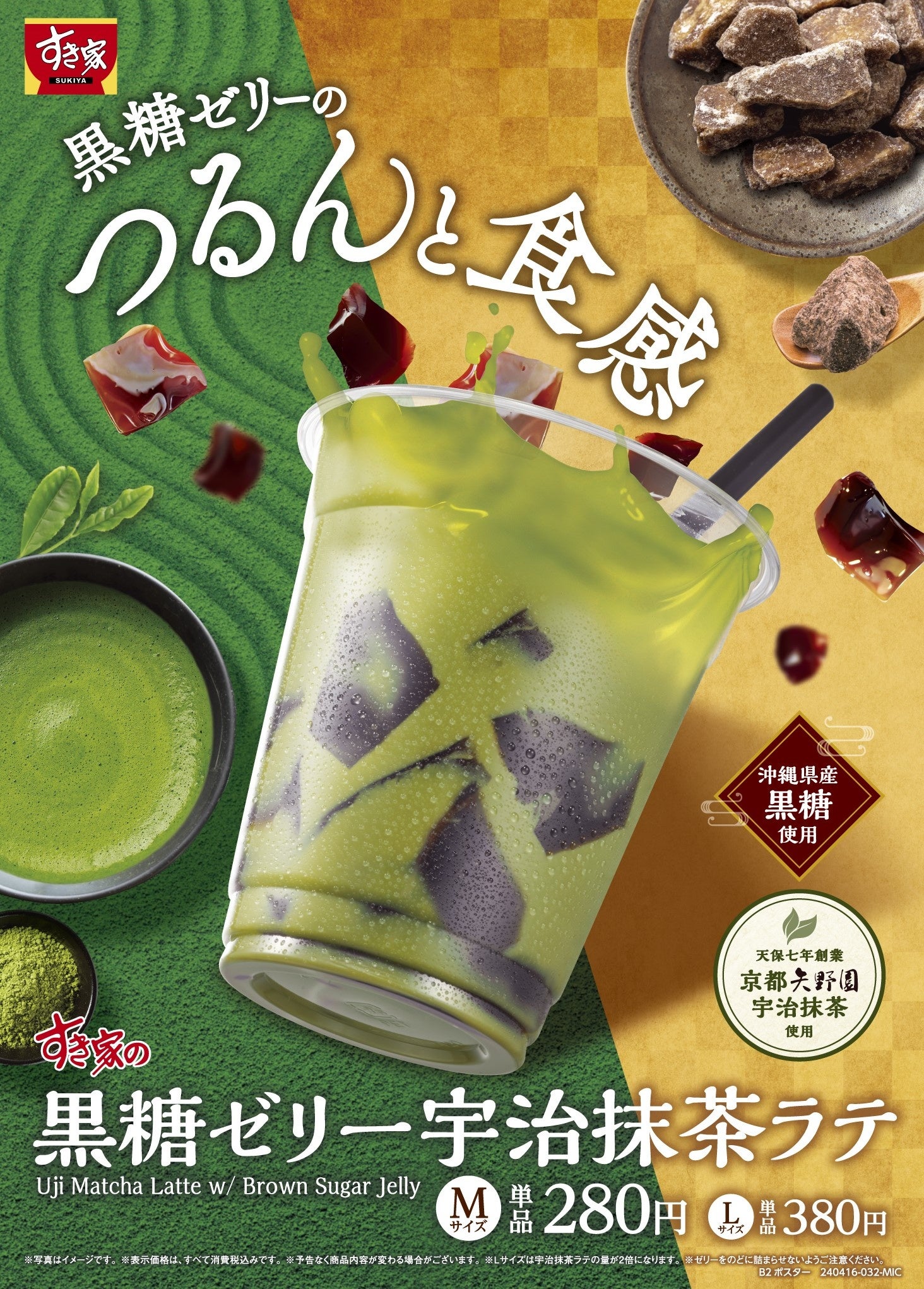 ぜひこの機会に、すき家やお家で「黒糖ゼリー宇治抹茶ラテ」をご堪能ください。
