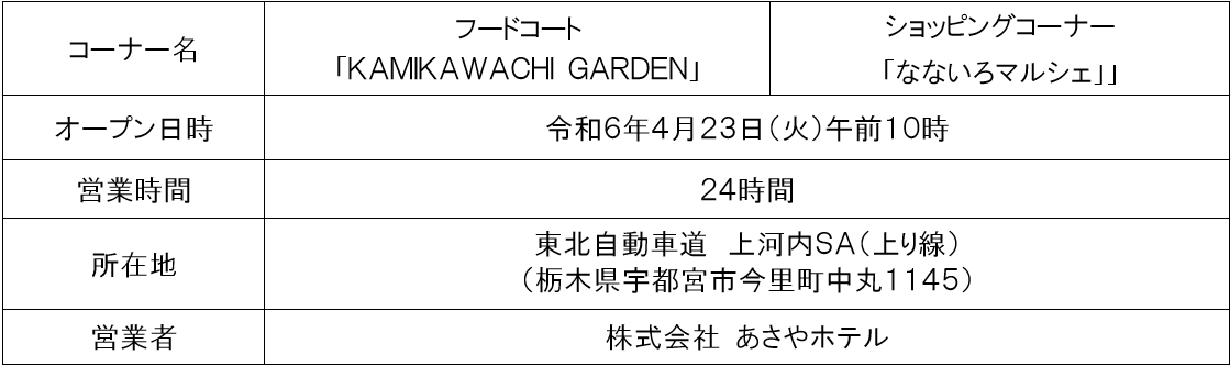 NEXCO東日本関東支社及びネクセリア東日本株式会社関東西支店(ともに埼玉県さいたま市)は、E4東北自動車道 上河内(かみかわち)サービスエリア(以下、「SA」)(上り線)において、フードコートとショッピングコーナーをリニューアルオープンしますのでお知らせします。令和6年2月にフードコート区画を一部先行オープンしておりましたが、今回のフルオープンで、より使いやすい商業施設に生まれ変わりました。