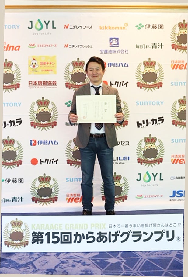 第10回からあげグランプリ®(2019年/エントリー230店舗(全部門))で初めて金賞受賞してから第14回のグランプリ®でも金賞を受賞し、5年連続金賞受賞。「美味しさ」への追及を重ねて、期待値のハードルを越えるべく第15回からあげグランプリ®へエントリーし見事6年連続金賞受賞しました。
