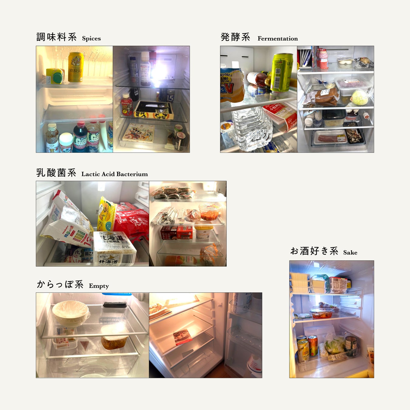 いくつか投稿いただいた中から、特徴が見受けられるものを抜粋し大きく「調味料系」「お酒好き系」「発酵品系」「乳酸菌系」「からっぽ系」の5タイプに分類。(Base size:一人暮らしZ世代 n=23)