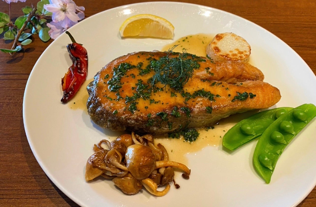 当店では2024年4月11日(木)から2024年4月30日(火)の期間中、春を代表する『サクラマス』を提供いたします。桜の咲く季節に漁の最盛期を迎えることからその名前がついたサクラマスは身に含まれる脂の量が多いため、旨みが詰まっており、口に入れると美味しさが一気に広がります。