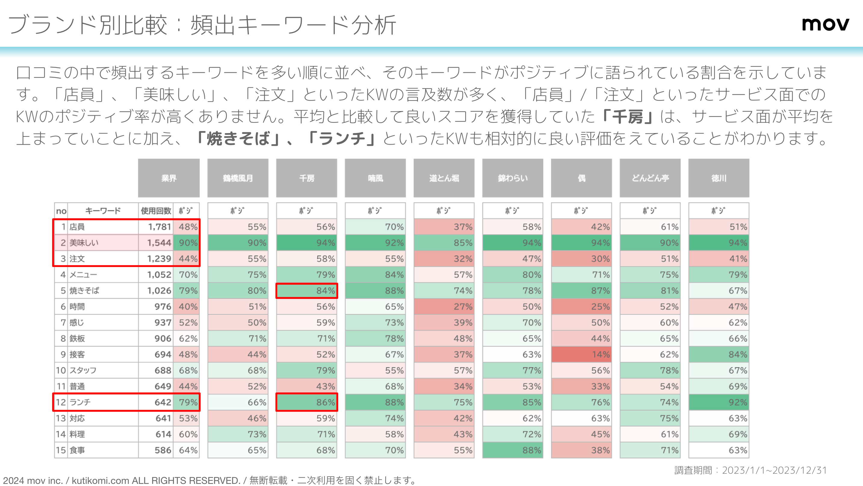 ※口コミ分析対象期間:2023年1月1日〜2023年12月31日