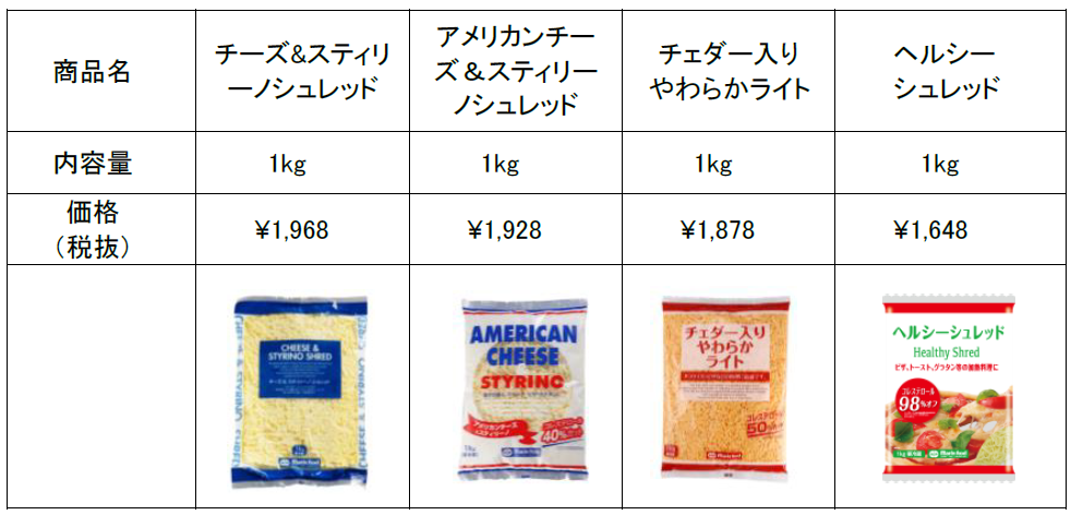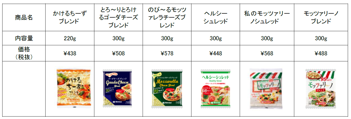 マリンフードでは、これまでに200gから1kgまでのシュレッド(短冊型)商品を販売してきましたが、近年の少人数世帯が増加していることを背景に、1~3回の料理で使い切れる小容量サイズを開発するにいたりました。これまでチーズを購入した後、使いきれず捨ててしまった経験がある方にとっても、嬉しいサイズです。