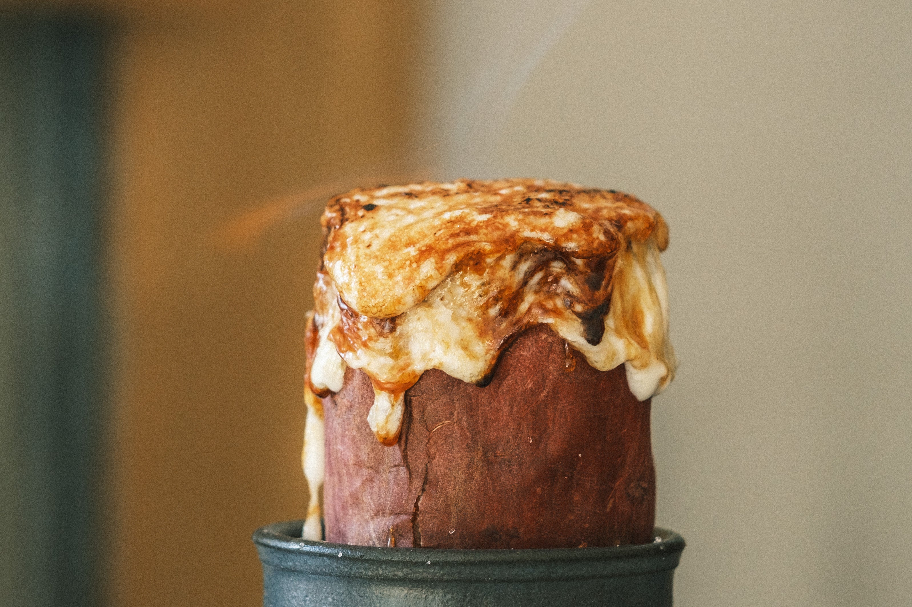 壺芋ブリュレは、従来の焼き芋のイメージを覆すほどに柔らかい壺焼き芋に、クリームをたっぷり詰めてブリュレしたお芋スイーツ。 付属のシュガーをかけてバーナーでジュワッと炙る体験と、できたてのブリュレとクリームの味わいを贅沢にご堪能いただけます。