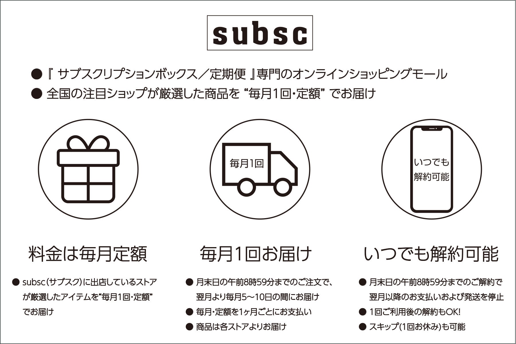 「何が届くか毎月ワクワクする」「新しいお気に入りと出会える」という、新しいショッピング体験の提供に取り組むサブスク形式のECモール subsc(サブスク)には、有名店からこだわりの専門店まで、さまざまなお店が出店しています。