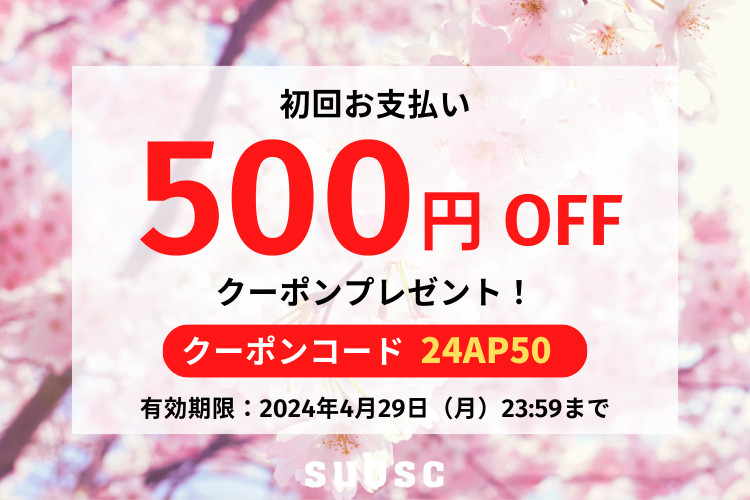ぜひこの機会にsubsc(サブスク)でのお買い物をお楽しみください!