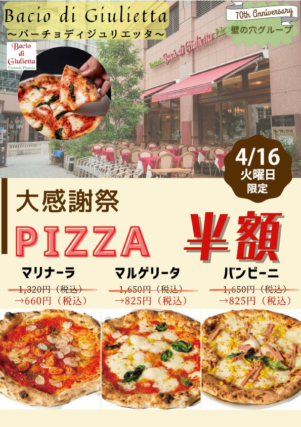 4月16日(火)「バーチョ・ディ・ジュリエッタ 恵比寿ガーデンプレイス店」大感謝祭
