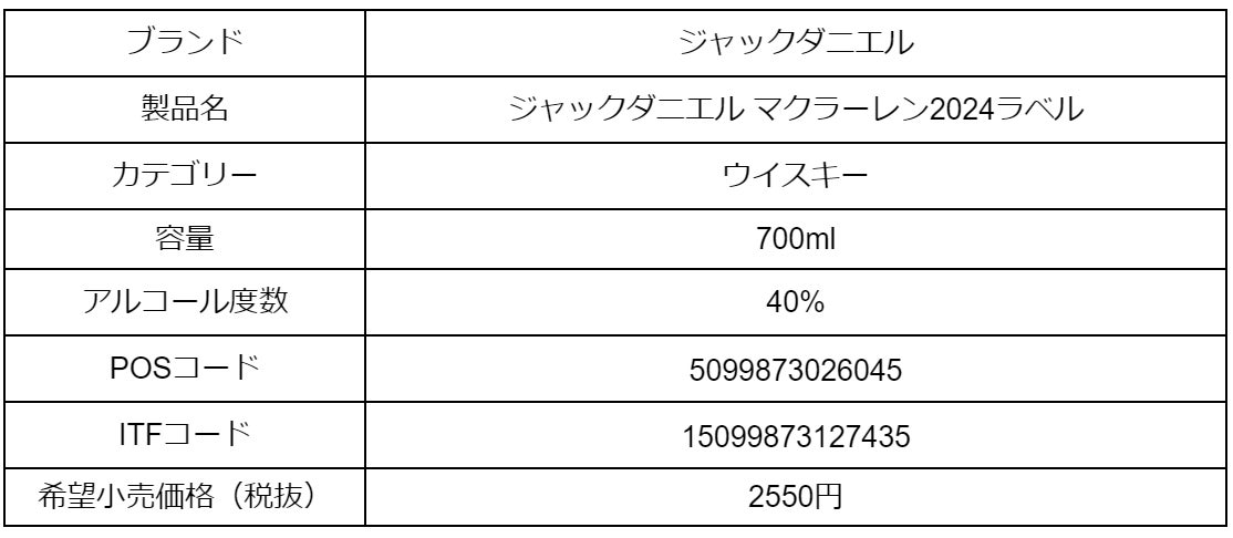世界有数のスピリッツ会社であるブラウンフォーマン社の日本法人、ブラウンフォーマンジャパン株式会社(本社:東京都港区、代表取締役社長:アーロン・J・マーティン)は、同社を代表するテネシーウイスキー「ジャックダニエル」と、英国の名門「マクラーレンFormula1チーム」とのコラボレーション限定製品「ジャックダニエル マクラーレン2024ラベル」を、2024年5月27日(月)より数量限定で発売することを発表いたします。