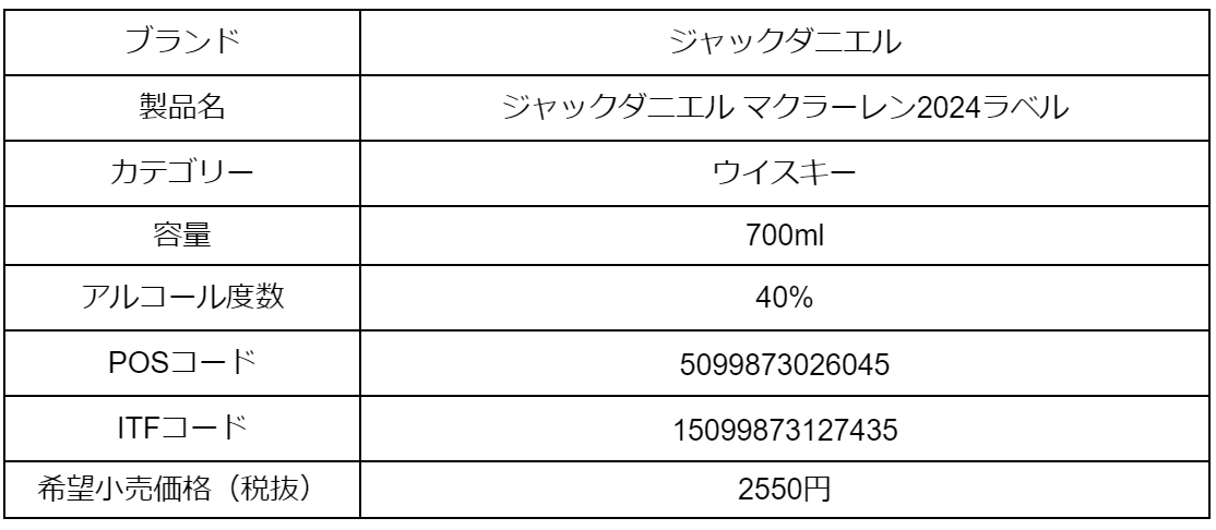 世界有数のスピリッツ会社であるブラウンフォーマン社の日本法人、ブラウンフォーマンジャパン株式会社(本社:東京都港区、代表取締役社長:アーロン・J・マーティン)は、同社を代表するテネシーウイスキー「ジャックダニエル」と、英国の名門「マクラーレンFormula1チーム」とのコラボレーション限定製品「ジャックダニエル マクラーレン2024ラベル」を、2024年5月27日(月)より数量限定で発売することを発表いたします。