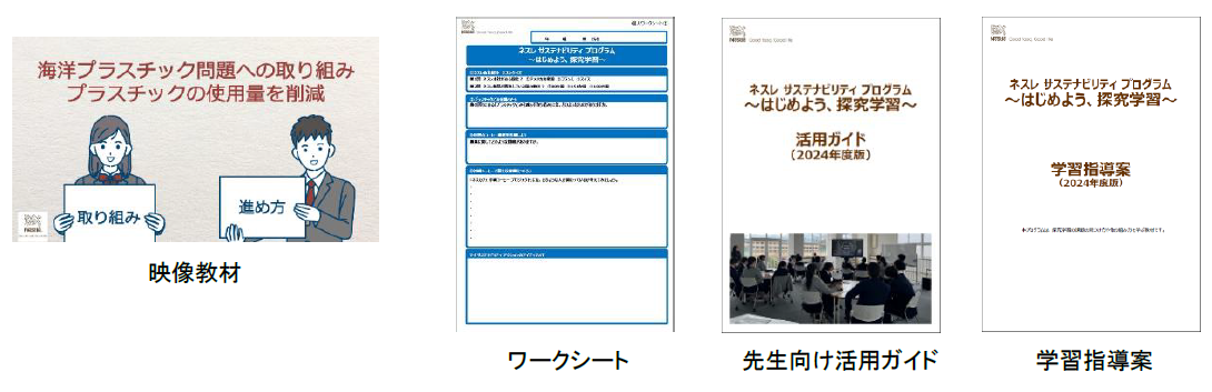2023年5月より提供を開始した、オンライン探究学習教材「ネスレ サステナビリティ プログラム」は、ネスレの社会課題に対する取り組みについて、映像を通して紹介する中学生、高校生向けの探究学習教材です。課題発見や解決にむけて物事を捉える視点や考え方を育み、主体的、協働的な学びをサポートします。「ネスカフェ」や「キットカット」など、日常生活のなかで身近に接する食品や飲料を題材にした映像教材であること、企業への出張授業申請や予定調整が不要な「オンライン教材」である手軽さが好評を博し、提供開始から約1年で、約300校に導入、2万人以上の中学生・高校生(※1)が学習に活用しました。