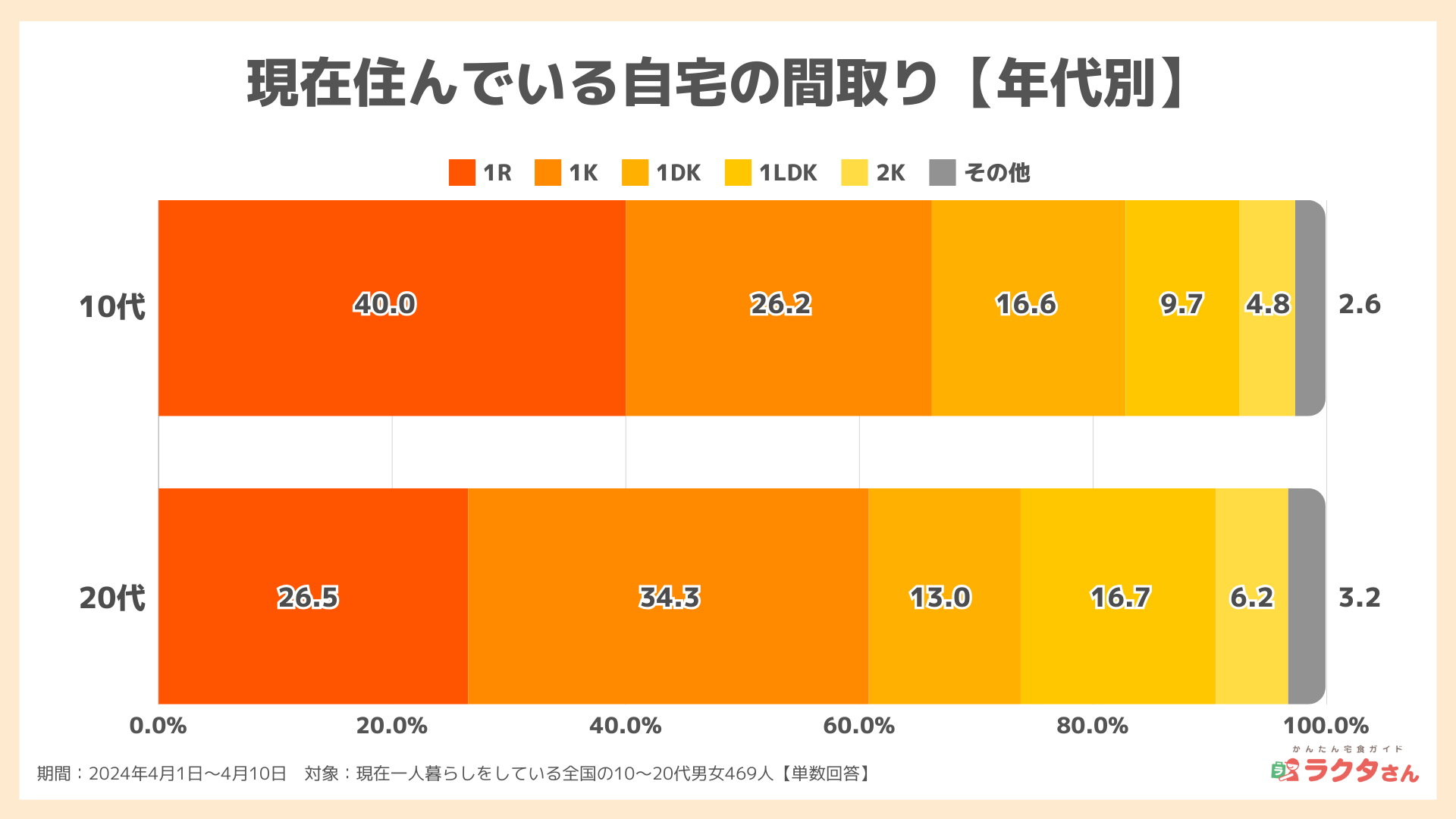 10代20代一人暮らしの間取りは「1K」が最多、続いて「1R」