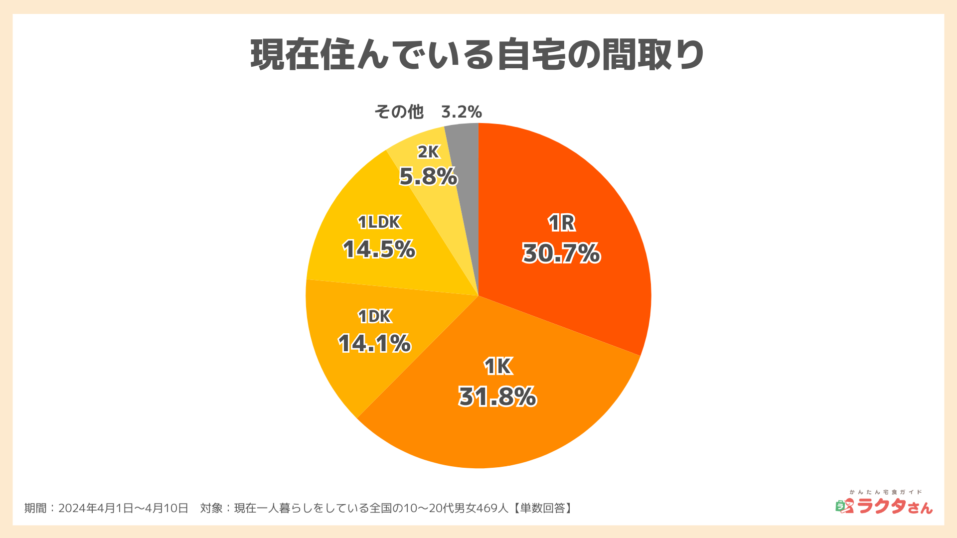約3割が、キッチンとリビングが同じ空間にある1R(ワンルーム)タイプの部屋に住んでいるようです。