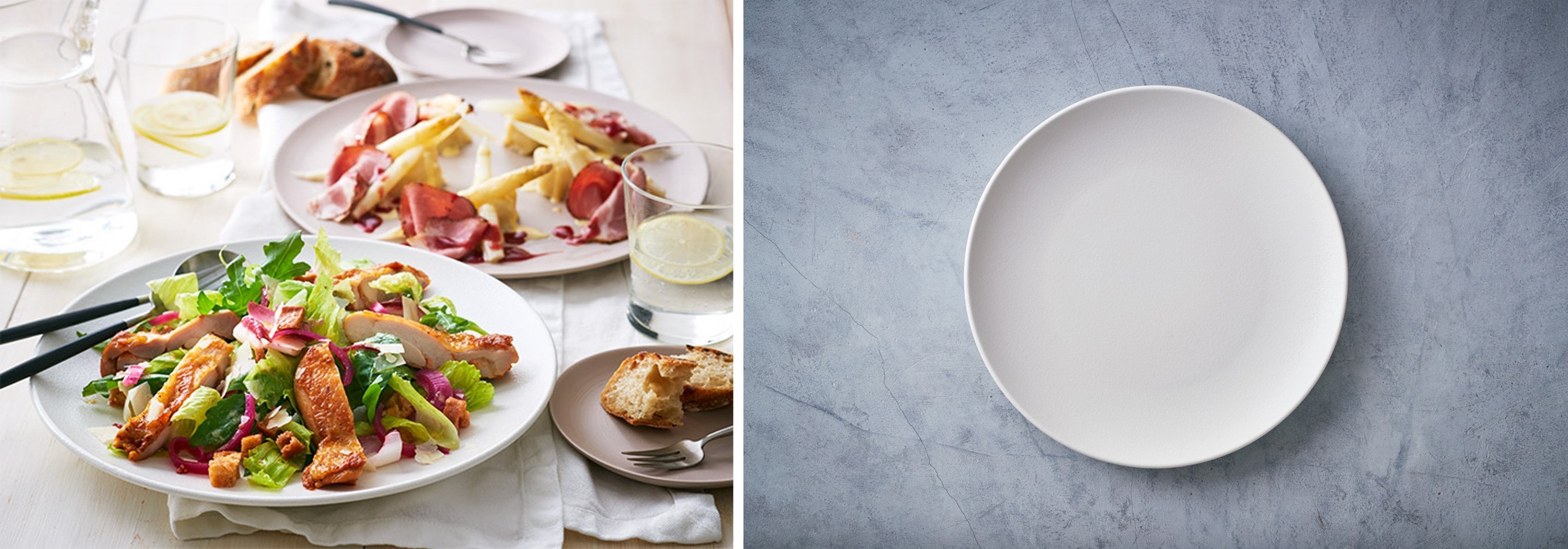 凛とした色合いの2種類のサラダが持つ美しさをシンプルなフラットプレートが引き出してくれます。