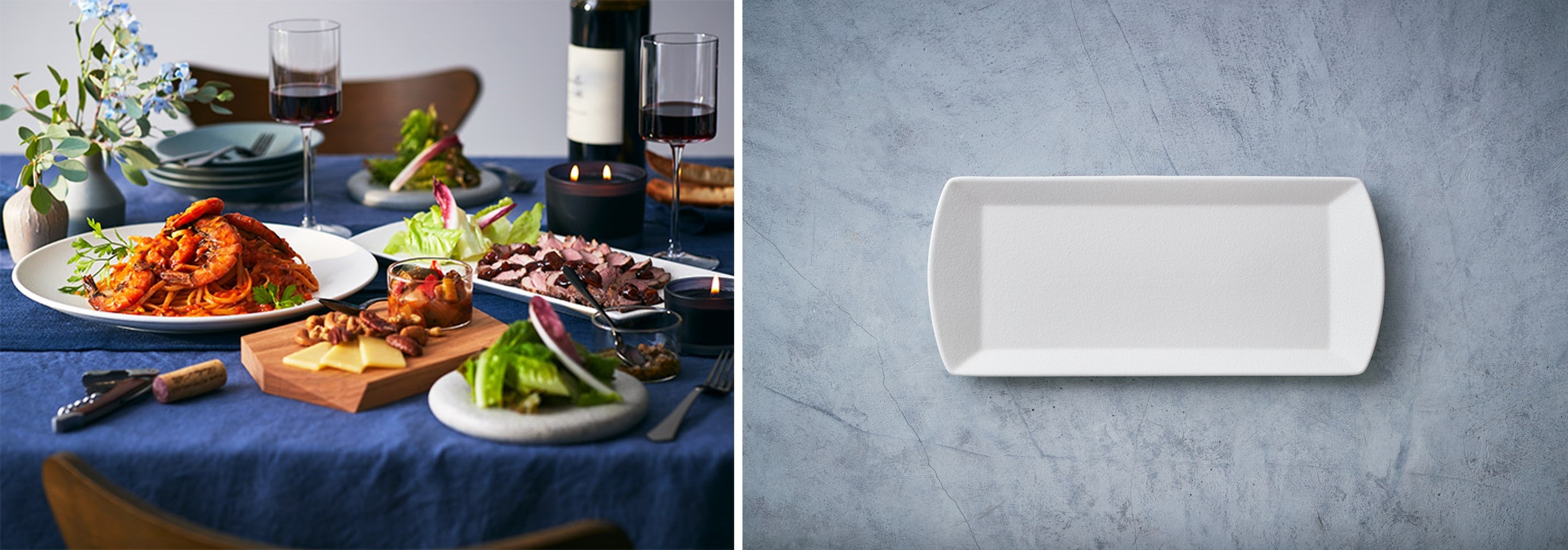 惣菜をつくる・つかうプロである当社の社員が自信をもって選んだうつわは、シンプルなデザインながら、素材を引き立たせ、ご自宅がレストランに変身するかのように食卓をより華やかに演出します。また、日常的に使いやすいように、電子レンジや食洗機対応などの機能性を兼ね備えたものを中心に選びました。