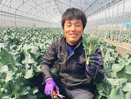 春の特徴を最大限に活かしたブロッコリー栽培にチャレンジしたい。そんな想いで誕生したのが、那須よかっぺ村の「陽春若芽ブロッコリー」です。本来ブロッコリーは中心部の蕾を育てますが、春は気候の変化が激しくこの中心部の蕾を上手く育てるのが難しいシーズン。「蕾が育たず失敗しやすい…だけどみずみずしい春のブロッコリーを何とか食卓でお届けできないか?」そんな課題に対して、那須よかっぺ村の益子さんがチャレンジしたのは、なんと中心部ではなく「わき芽」を育てること。ブロッコリーは中心部のまわりからも「わき芽」がニョキニョキと生えてきますが、新芽で成長力の高いわき芽は中心部の蕾への栄養を奪ってしまうので、普通はカットされます。しかし益子さんは逆転の発想で、中心部を切り取り「わき芽」を育てる方法に挑戦したところ、それが大成功。「春のブロッコリーのみずみずしさを活かすには新芽の成長力を活かせないか?と考え栽培してみたらとても食感がよくおいしいブロッコリーになりました。(益子さん)」