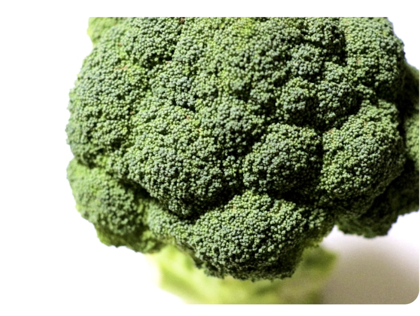 ブロッコリーは花の固まりで1個あたり3万個ほどの花のつぼみがついています。 品種によっては約7万個の花がつくものもあります。 |