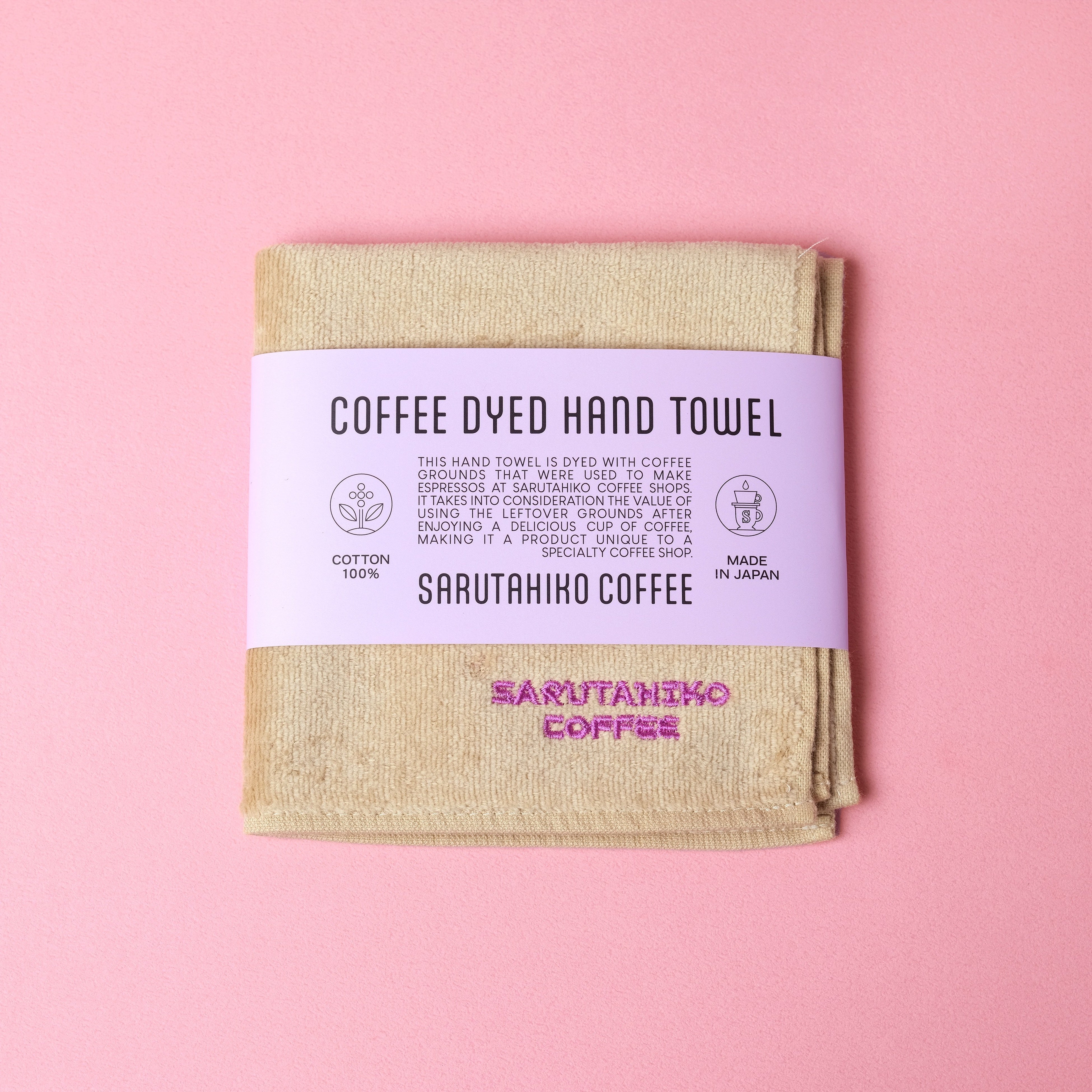 珈琲染めハンドタタオル第三弾 は、マザーズデイブレンドに合わせた特別使用でご用意。コーヒーの出涸らしを再利用して染めたほんのり薄めのコーヒー色のボディに、刺繍の色をパープルにすることでやわらかい印象に仕上げました。
