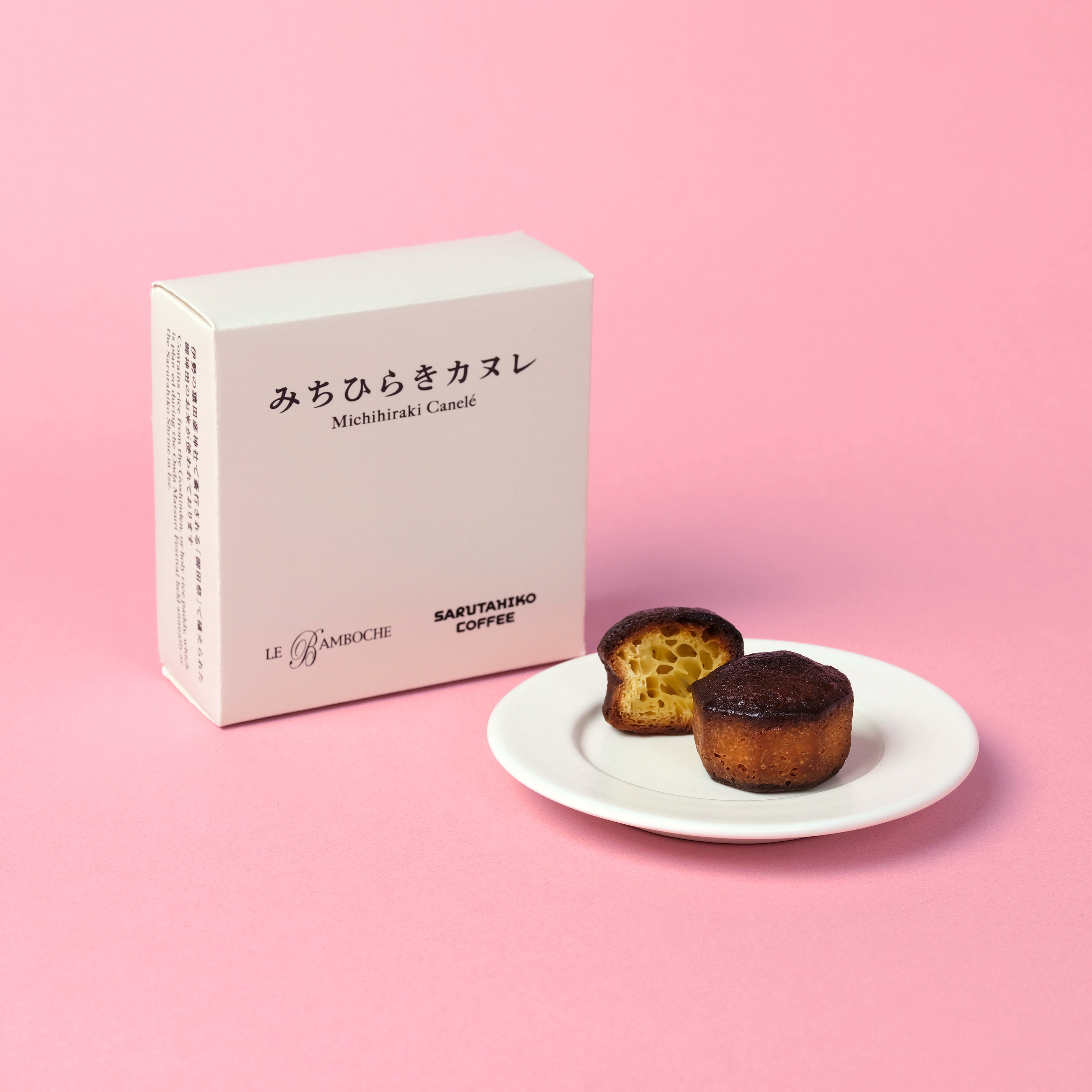 三重県・多気店限定で販売している、伊勢神宮の清流・宮川に佇むフレンチレストラン「ル・バンボッシュ」のシェフ福井隆一氏が猿田彦神社の象徴的な八角形をモチーフにして焼き上げた「みちひらきカヌレ」を猿田彦珈琲の一部店舗、公式オンラインショップで販売いたします。毎年斎行される「御田祭」で植えられたお米を使用し、表面はカリッと、中はもっちりとした食感をお楽しみいただけます。限定ボックスに入っており、贈り物にもおすすめです。