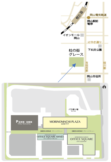 岡電バス・両備バス「山陽新聞社前・杜の街入口」バス停より徒歩1分