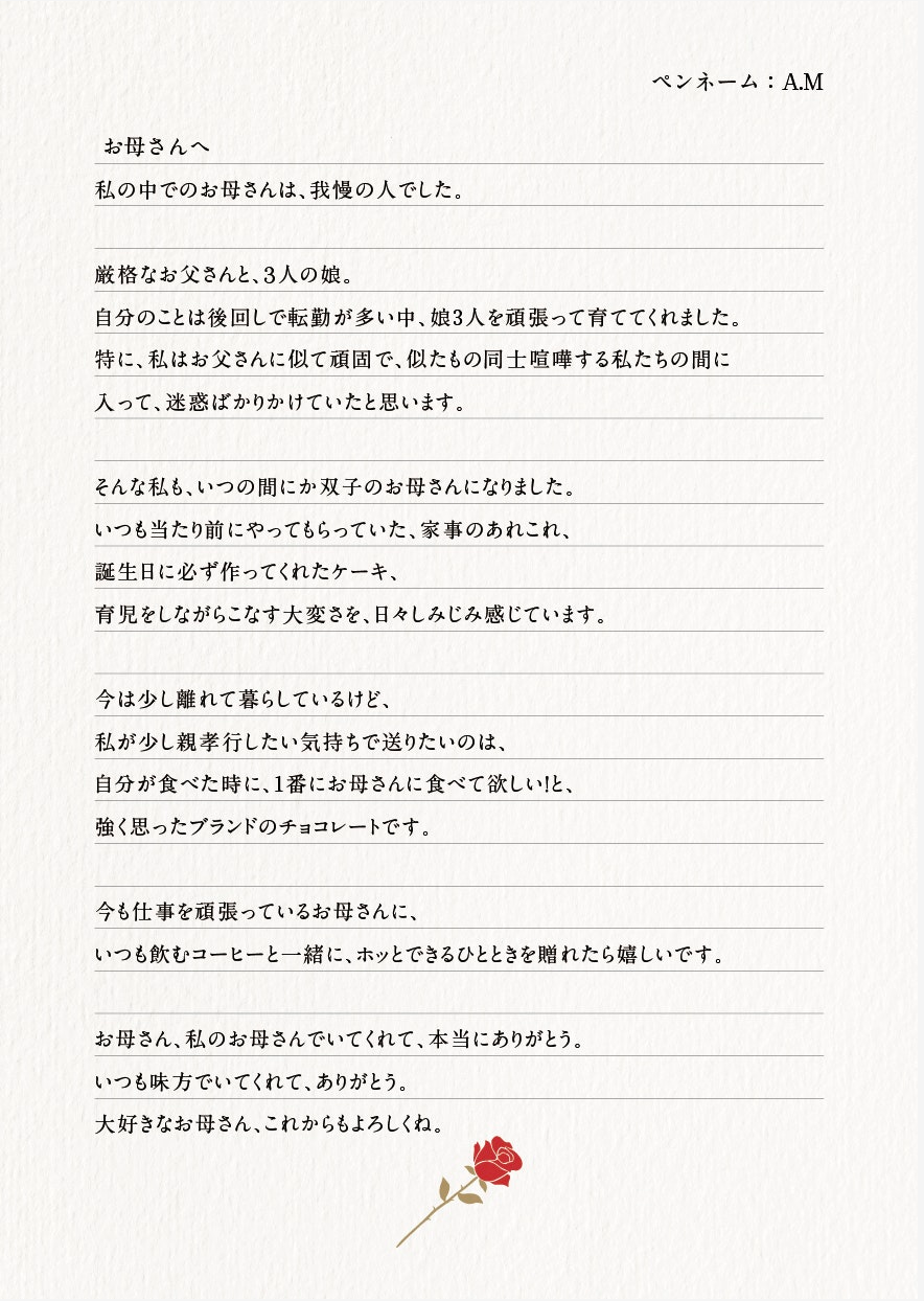 メゾンカカオでは母の日をさらに特別な日にするため、皆さまからの「母への手紙」を募集します。