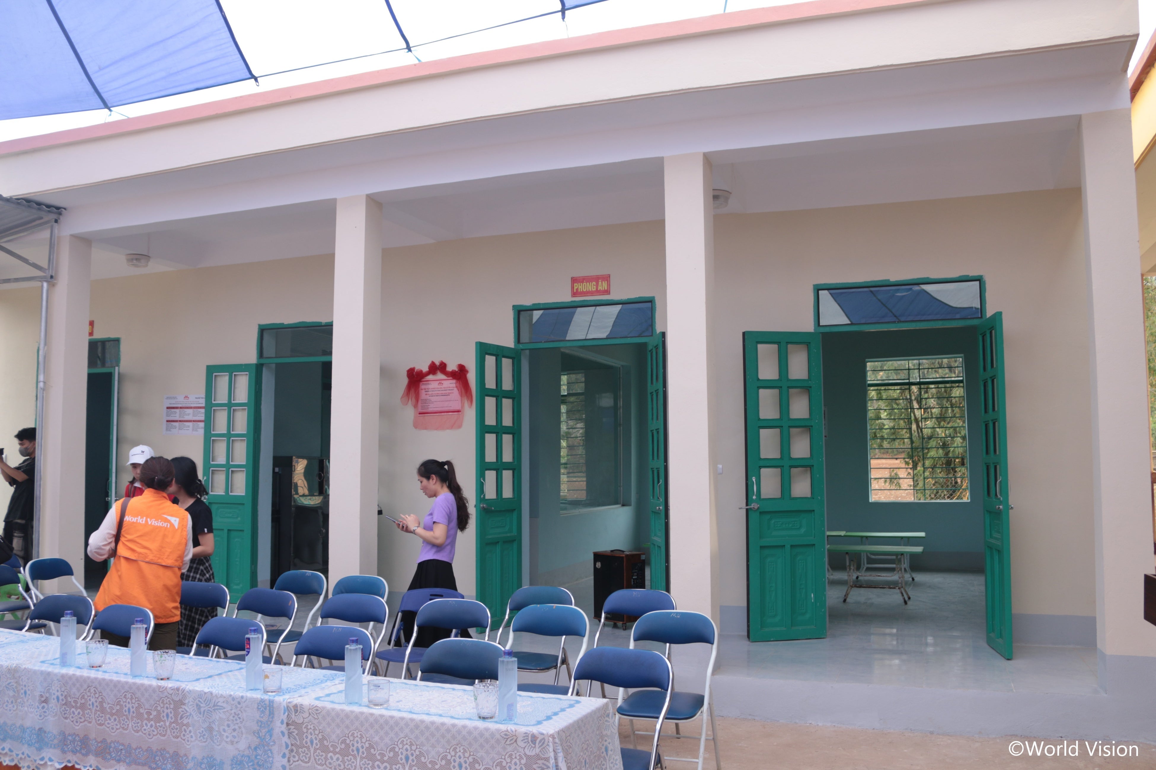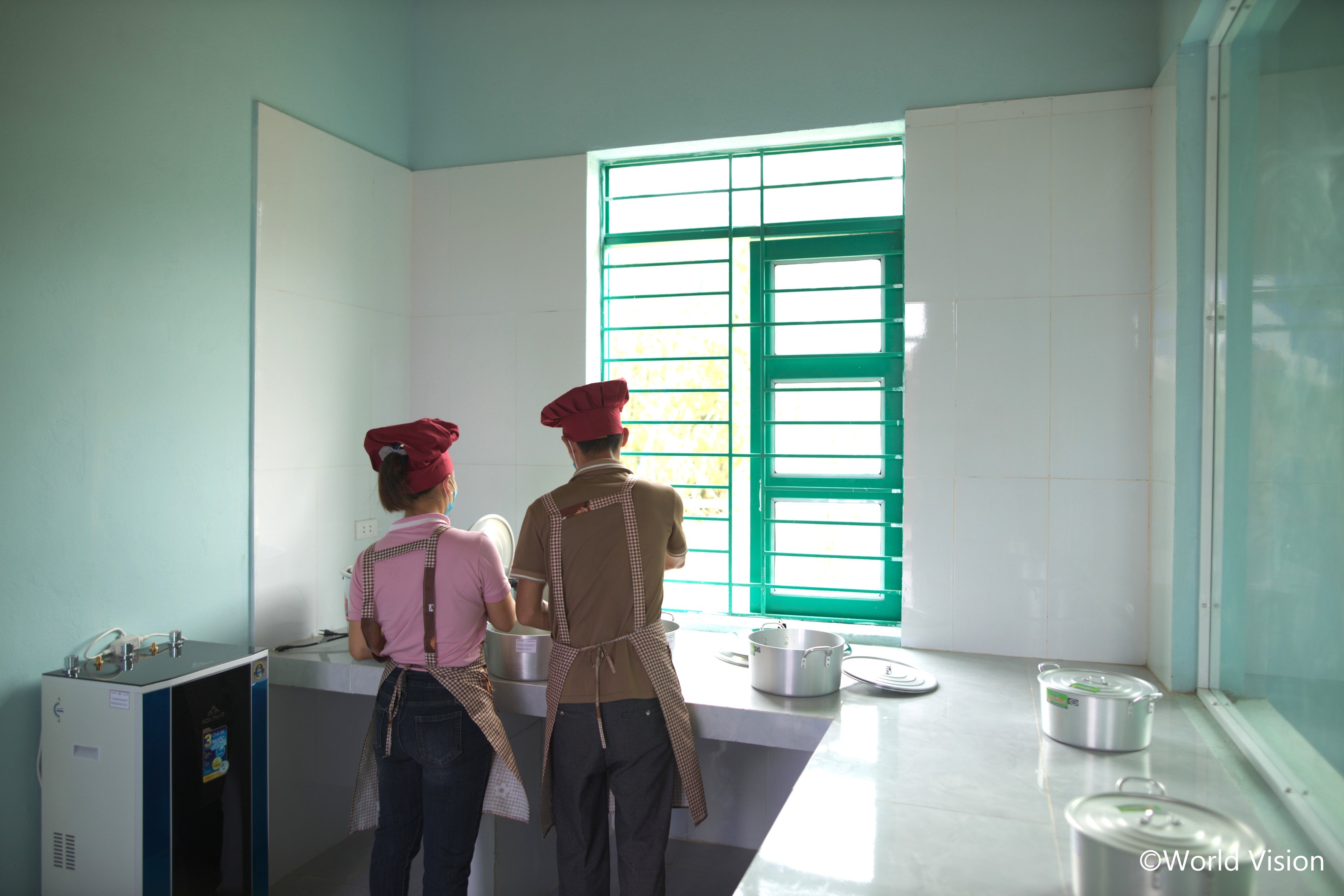 トアンザオ郡内支援対象の幼稚園3園のうち、2園に対しては給食調理施設を建設し、1園には給食を食べる際に使用する家具および調理備品の提供を行いました。また、3幼稚園に対し、幼稚園スタッフや調理スタッフに向けた栄養・衛生に関する知識とスキル向上を目的に、栄養・衛生に関するハンドブックの作成・配布、研修の実施、栄養価の高い野菜(からし菜)の園内栽培サポートなどを行いました。教員・保健スタッフに対しては子どもの栄養・健康の測定に関する知識と技術の強化を行いました。