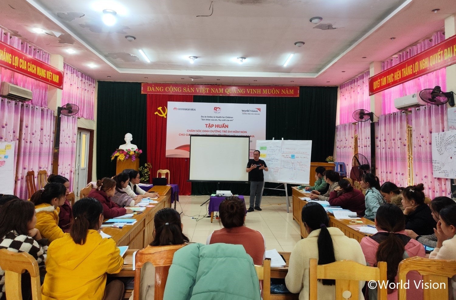 幼稚園スタッフや調理スタッフに向けた研修の様子