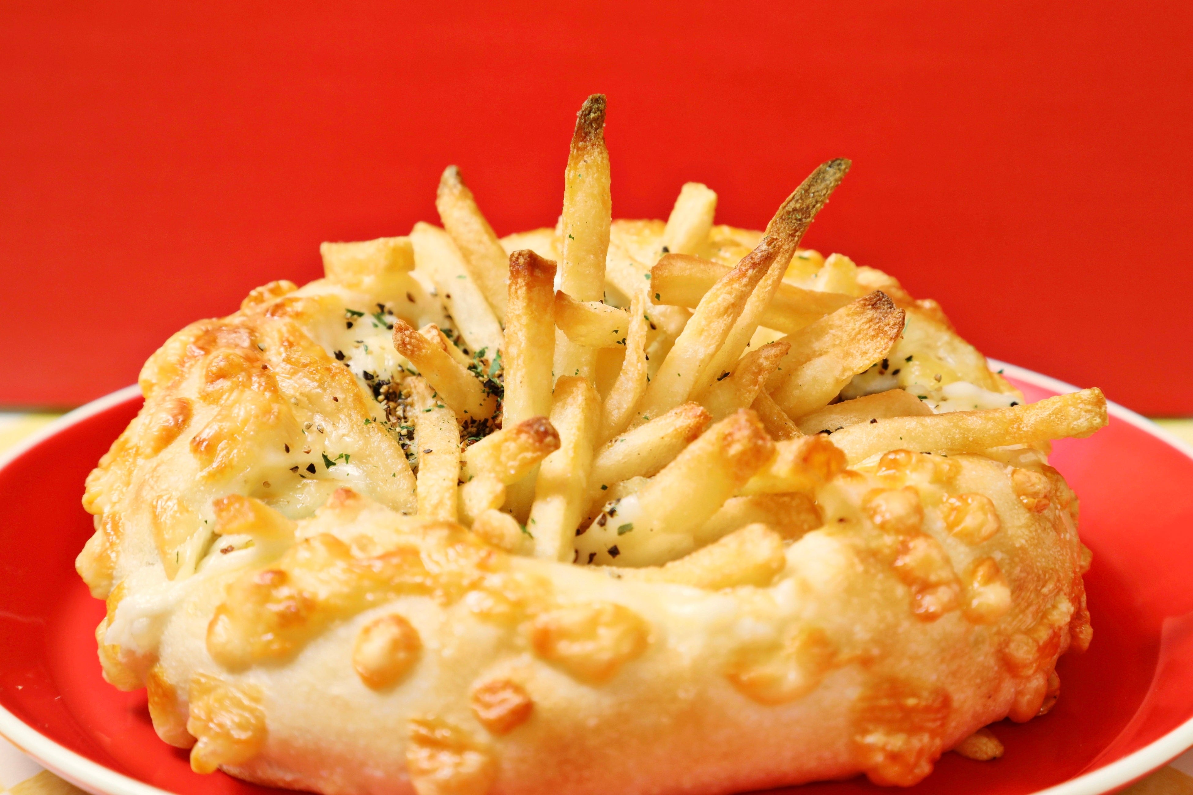 こだわり :惣菜パン人気No.1 『のび~るとろりんチーズフランス』に“山盛り”のフライドポテトを盛った、目を